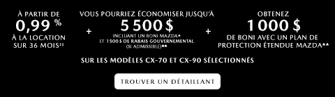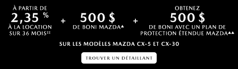 Je consens à recevoir des courriels et autres communications électroniques contenant de l’information, des promotions et des offres pour les produits et services de Mazda Canada inc. (