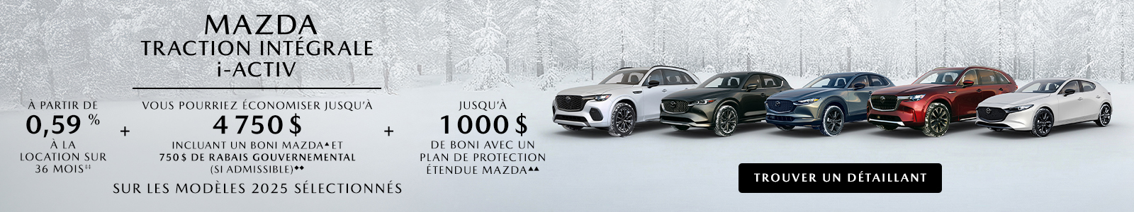 DÉTAILLANTS, qui sont pertinents à mes intérêts en fonction des renseignements que Mazda possède à mon sujet. Le consentement est sollicité par Mazda en son propre nom et au nom de ses détaillants. Je pourrai me désabonner à tout moment. Je consens également à ce que Mazda utilise mes renseignements conformément à sa