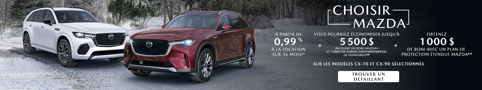 DÉTAILLANTS, qui sont pertinents à mes intérêts en fonction des renseignements que Mazda possède à mon sujet. Le consentement est sollicité par Mazda en son propre nom et au nom de ses détaillants. Je pourrai me désabonner à tout moment. Je consens également à ce que Mazda utilise mes renseignements conformément à sa