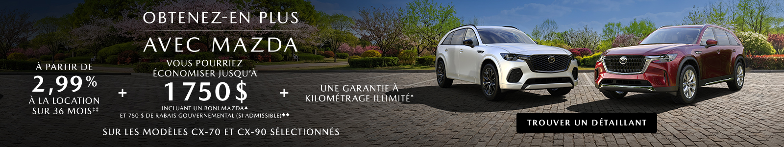 DÉTAILLANTS, qui sont pertinents à mes intérêts en fonction des renseignements que Mazda possède à mon sujet. Le consentement est sollicité par Mazda en son propre nom et au nom de ses détaillants. Je pourrai me désabonner à tout moment. Je consens également à ce que Mazda utilise mes renseignements conformément à sa